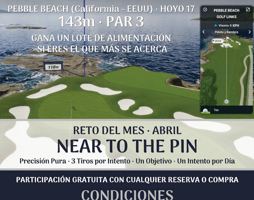Gracias a nuestro simulador de golf Foresight Falcon, podemos ofrecerte la posibilidad de jugar este campo de golf sin opción de Putt por solo 10€, y si eres socio puedes jugarlo gratis gracias a la nueva tarifa plana.