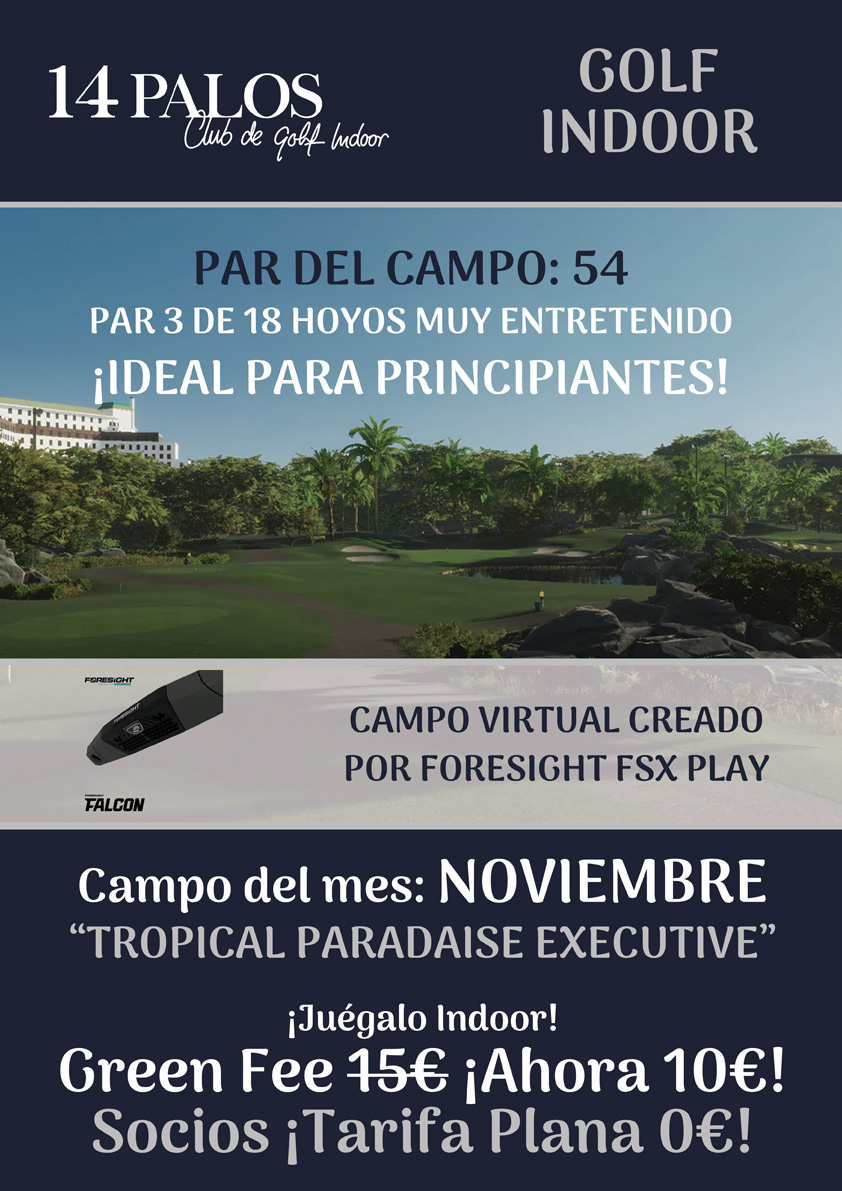 El «Campo del Mes en 14 Palos» repite este mes de NOVIEMBRE el «TROPICAL PARADISE EXECUTIVE», debido a la gran acogida entre los jugadores recién iniciados en el golf.